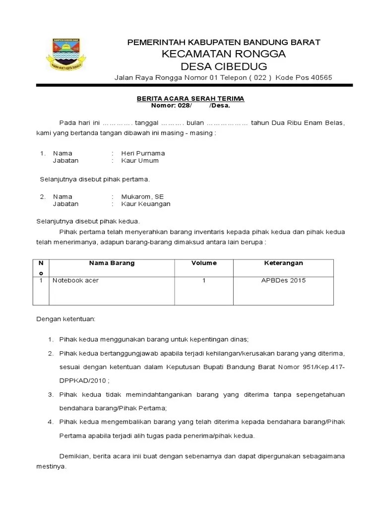 Berita acara serah terima barang. Contoh surat serah terima barang inventaris kantor picture published ang submitted by admin that kept inside our collection. Berita acara serah terima barang inventaris by b1j4ck.
